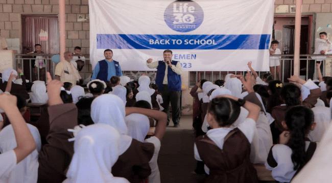 وزعت منظمة لايف للإغاثة والتنمية 300 حقيبة مدرسية مجهزة بالضروريات الأساسية على طالبات الفصول الأولى في مدرسة بئر ناصر بمديرية تبن بمحافظة لحج بحضور مدير عام مكتب التربية والتعليم في محافظة لحج أ/ فهمي بجاش.
