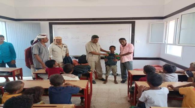 دشن مدير عام مكتب التربية والتعليم بمحافظة الحديدة ابراهيم أجعش، اليوم، توزيع عدد 2500 حقيبة مدرسية اليوم بمدرسة النهضة في مديرية الخوخة جنوب محافظة الحديدة.