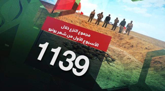 أعلنت غرفة عمليات مشروع “مسام” لتطهير الأراضي اليمنية من الألغام أن فرق المشروع تمكنت خلال الأسبوع الأول من شهر يونيو الجاري من نزع 1139 لغماً وذخيرة غير منفجرة وعبوة ناسفة، بينها 1080 ذخيرة غير منفجرة و56 لغماً مضاداً للدبابات.