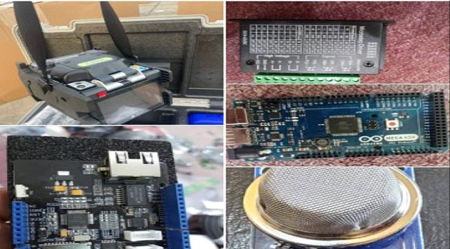 وشملت الضبطية التي تتكون من اكثر من 90 نوعا مكونة من أجهزة لحام الألياف الضوئية ولوحات برمجية وحساسات متنوعة إضافة الى كايبلات توصيل.