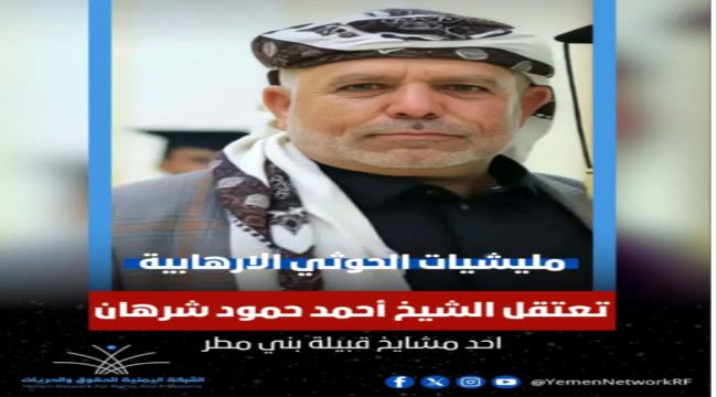 وحملت الشبكة اليمنية للحقوق والحريات مليشيات الحوثي الارهابية المسؤولية الكاملة عن سلامة الشيخ أحمد حمود شرهان، وعن أي تبعات قد تترتب على هذه الممارسات الإجرامية.