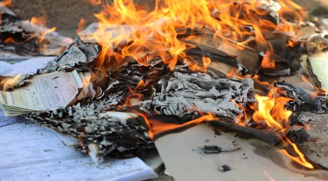 أتلفت رئاسة مصلحة الأحوال المدنية والسجل المدني اليوم في العاصمة المؤقتة عدن كمية من الأوراق الثبوتية القديمة التي تم ضبطها في وقت سابق بنقطة مصنع الحديد بمحافظة لحج، أثناء قدومها من مناطق سيطرة مليشيات الحوثي الارهابية كانت في طريقها للعاصمة المؤقتة عدن .