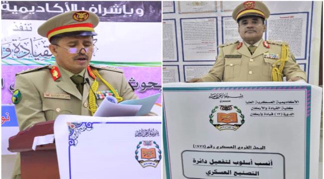 نال كلٌّ من العميد الركن ياسر عبدالله الروحاني والعميد عبده محمد صالح طرموم درجة الماجستير في العلوم العسكرية من كلية القيادة والأركان – الأكاديمية العسكرية العليا، بعد مناقشة بحثين علميين نوعيين تناولا قضايا استراتيجية في مجالي التصنيع الحربي والأمن البحري، تواكب التحديات الراهنة التي فرضتها مليشيا الحوثي الإرهابية على اليمن والمنطقة.