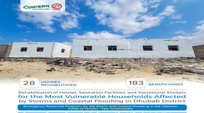 ترميم وصيانة منازل ومرافق صرف صحي لـ ٢٨ أسرة (بمعدل غرفة واحدة وحمام لكل منزل).