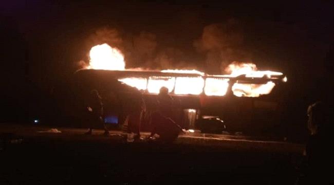 نجا 13 راكبًا من حريق اندلع في حافلة نقل جماعي بمنطقة نقيل العرقوب- محافظة أبين، فجر اليوم الجمعة، في حادثة هي الثانية من نوعها في المنطقة منذ نوفمبر الماضي.