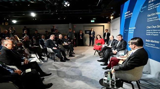 وقال فخامة الرئيس في جلسة حوارية حول أمن الممرات المائية، ضمن فعاليات مؤتمر ميونيخ للأمن الدولي الذي انطلقت أعماله اليوم الجمعة" أن تحقيق الأمن المستدام للملاحة الدولية يتطلب نهجا مختلفا مع القضية اليمنية، بحيث يساعد على بناء مؤسسات الدولة الوطنية ويحقق الردع ضد الارهابيين، ولا يكتفي باحتوائهم أو تقديم الحوافز لهم".