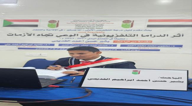 كما نوّهت اللجنة بالجهود المتميزة التي بذلها الباحث خلال مراحل إعداد الرسالة، وأقرت منحه درجة الماجستير بتقدير امتياز، تقديراً لإسهاماته البحثية في دراسة أثر الدراما التلفزيونية على وعي المجتمع اليمني تجاه الأزمات.