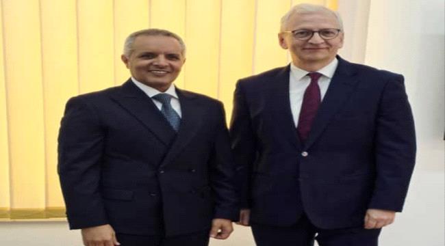 بحث وزير الشؤون الاجتماعية والعمل، مختار اليافعي، اليوم، مع سفير جمهورية ألمانيا الاتحادية لدى اليمن، توماس شنايدر، سبل تعزيز التعاون المشترك في المجالات الإنسانية والتنموية.