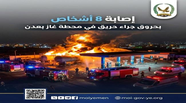 أصيب 8 أشخاص بحروق متفاوتة في حادثة حريق اندلعت في محطة القرش لتعبئة الغاز بمديرية المنصورة – قسم القاهرة بمحافظة عدن، نتيجة تسرب غاز أثناء عملية التع...