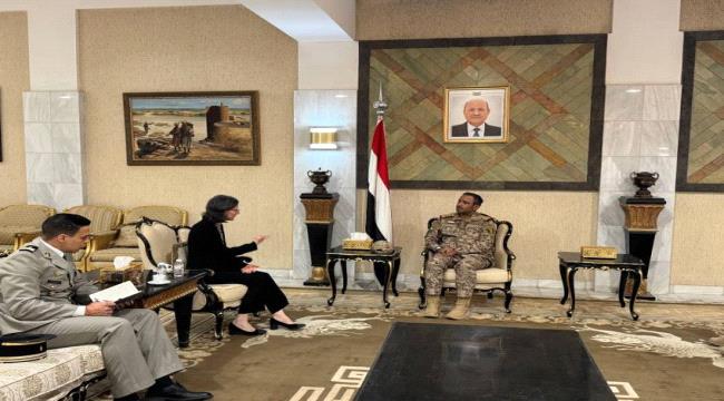 بحث رئيس هيئة الأركان العامة، قائد العمليات المشتركة، الفريق الركن صغير بن عزيز، مع السفيرة الفرنسية لدى اليمن، كاترين كمون قرم، والملحق العسكري الفرن...