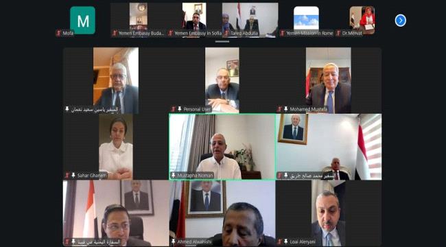 عقد نائب وزير الخارجية وشؤون المغتربين، مصطفى نعمان، اليوم، اجتماعاً موسعاً عبر تقنية الاتصال المرئي، مع رؤساء بعثات الجمهورية اليمنية لدى افريقيا. ون...