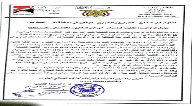 تفقد وكيل أول محافظة تعز، الدكتور عبدالقوي المخلافي، اليوم، سير العمل في الوحدة التنفيذية للضرائب على كبار المكلفين، والاطلاع على القضايا المتعلقة بتح...