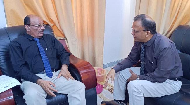 بحث وكيل أول محافظة تعز، الدكتور عبدالقوي المخلافي، اليوم، مع المدير القطري لمنظمة التضامن الدولية (سوليداريتيس) في اليمن، دماريس بدفنت، أزمة المياه ا...