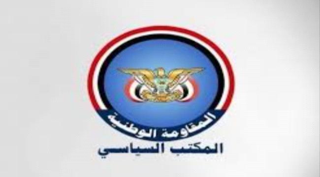 أدان المكتب السياسي للمقاومة الوطنية حملة الاعتقالات الواسعة التي تقوم بها مليشيا الحوثي الإرهابية في صنعاء وإب وعمران وحجة والمحويت والحديدة والبيضا...